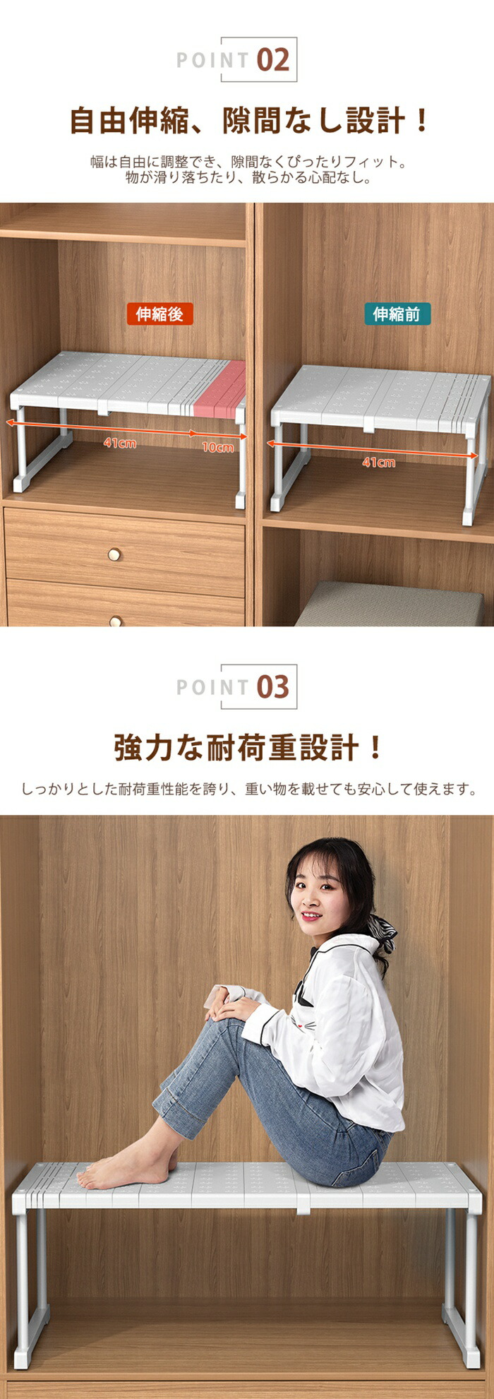 伸縮棚 積み重ね 幅 27-108cm 27-38cm 37-48cm 47-68cm 67-88cm 87-108cm 24cm 42cm