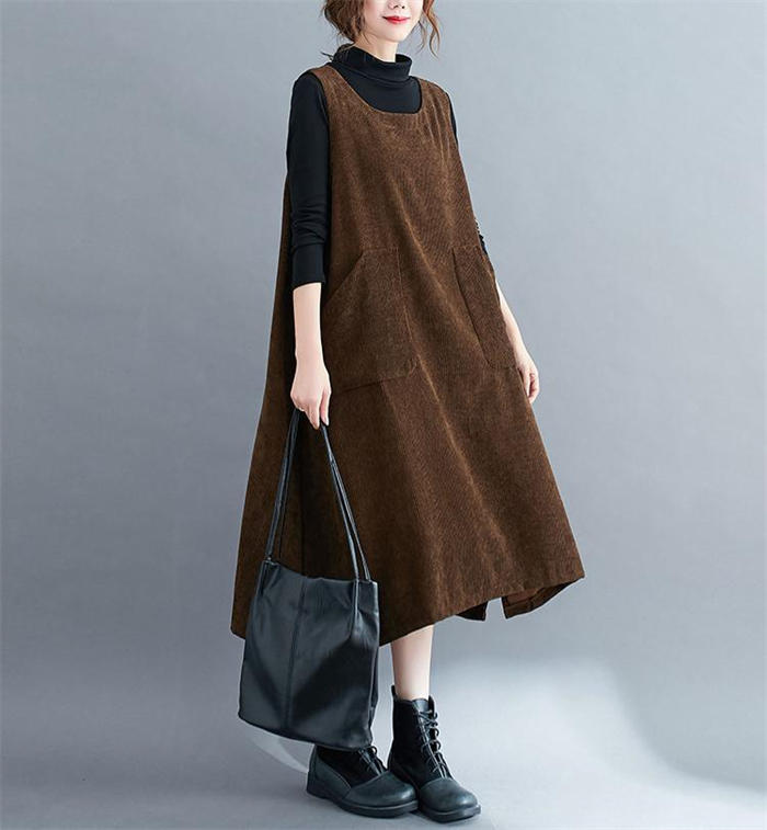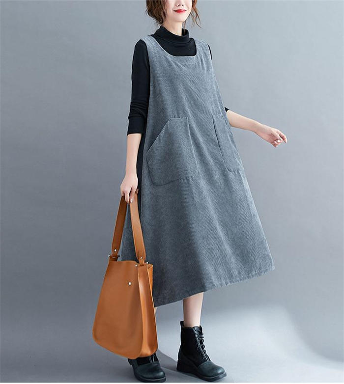 コーデュロイ ジャンパースカート レデ コーヒー色 グレーブルー 黒 M L XL 2XL