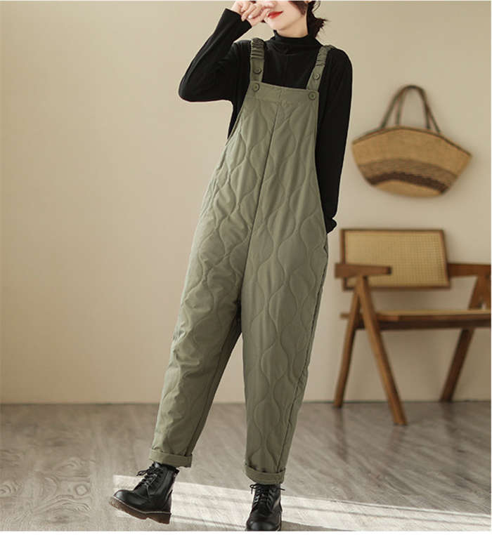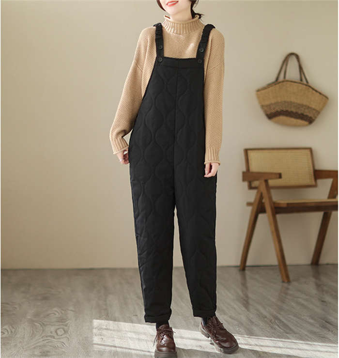 中綿 パンツ サロペット オールインワ レディースファッション 続々入荷中 ブラック カーキ M L XL 2XL