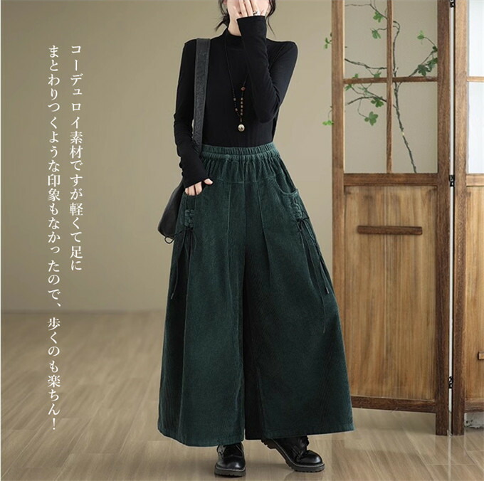 キュロット レディース ロング丈 長ズ レディースファッション 新作 ブラック ワインレッド コーヒー色 グリーン M L XL 2XL