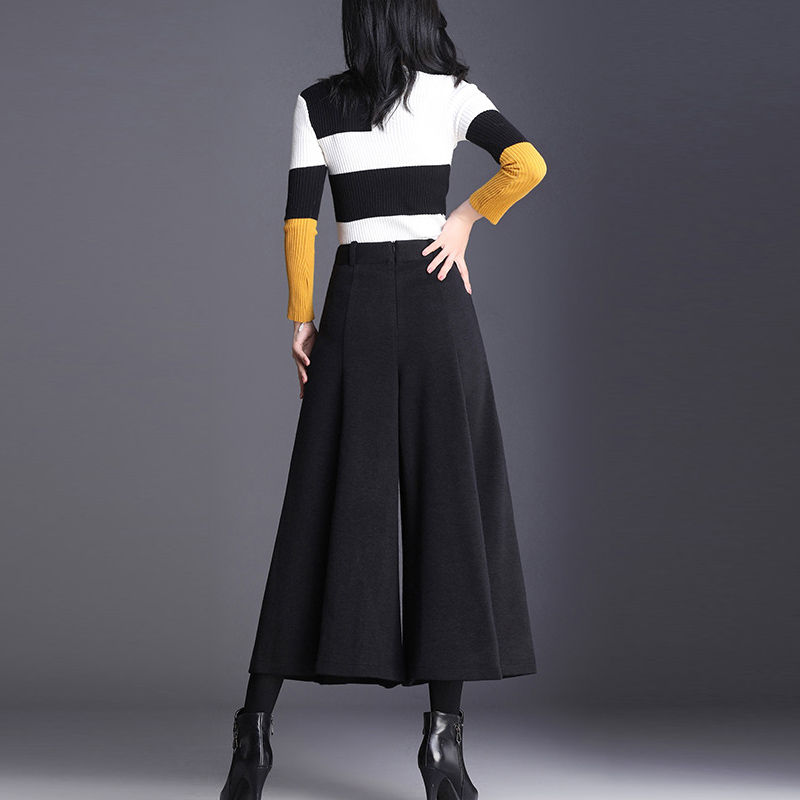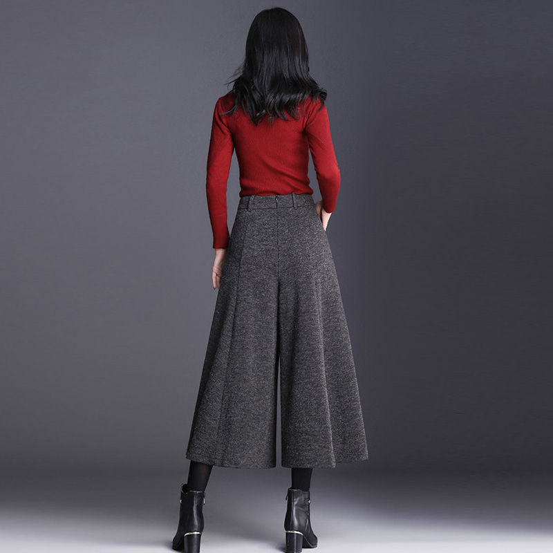 ガウチョパンツ 冬 ワイドパンツ レデ ボトムス キュロットスカート 新作 グレー ブラック S M L XL 2XL 3XL
