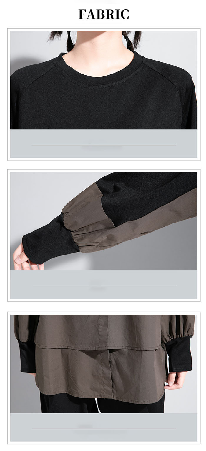フェイクレイヤード tシャツ 長袖 レ トップス スウェット トレーナー 通販 黒×黒 黒×白 黒×ブラウン M L