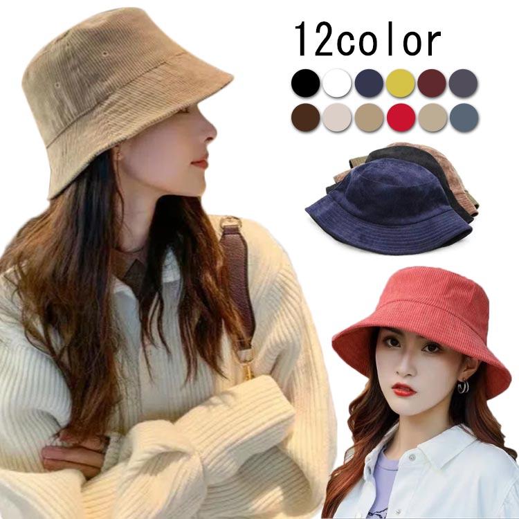 ハット レディース 秋冬 コーデュロイハット 大きいサイズ 帽子 深め つば広 コットン シンプル 可愛い 女性 大きめ バケット おしゃれ