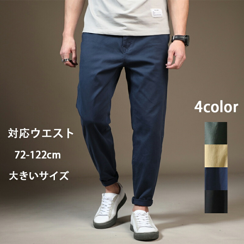 超伸縮 ジョガーパンツ メンズ ズボン 秋 綿97% チノパンツ ワークパンツ 大きいサイズ 裾リブ ストレッチパンツ ウエストゴム リラックス 調整紐 9分丈 オシャレ テーパードパン アンクル丈