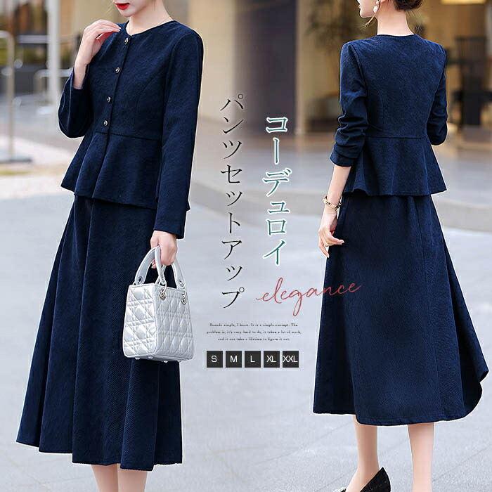 コーデュロイ セットアップ スーツ フォーマルスーツ スカートスーツ レディース 上下セット スカート ロング丈 きれいめ 華やかおしゃれ 体型カバー フレアジャケット 卒業式 ママ セレモニ 入学式