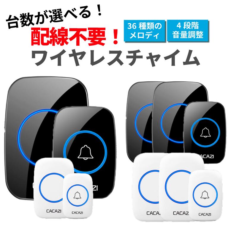 ワイヤレスチャイム 玄関 チャイム ワイヤレス ドアベル 呼び鈴 ベル センサー 介護 インターホン 無線 防水 子機 2台 受信機 子供 交換 ピンポン おしゃれ