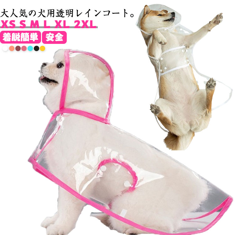 フード付き 犬用透明レインコート 雨対策 着脱簡単