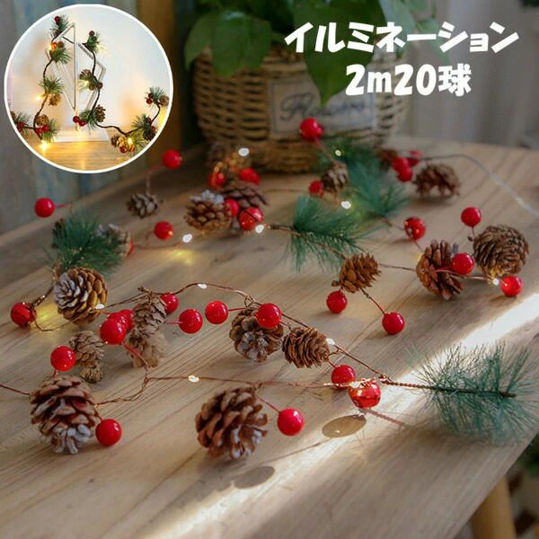 ランプ インテリア 照明 LEDライト クリスマス装飾 おしゃれ 飾り 間接照明 電飾 イルミネーション マツカさ 居間用 2m20個 ストリングライト LED 電池式 LEDイルミネーションライト