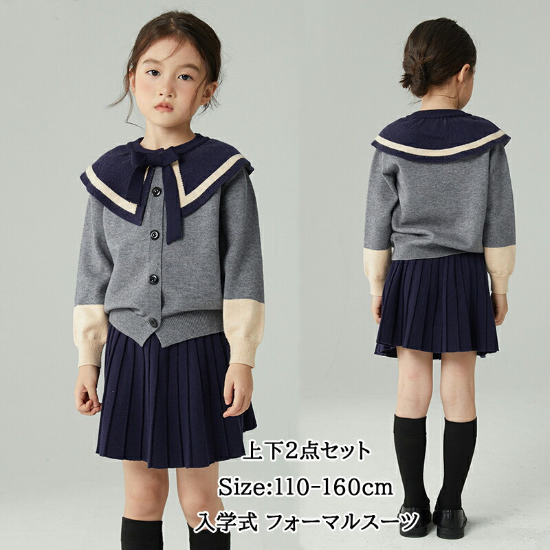 子供 女の子 入学式 卒業式 フォーマルスーツ スカートスーツ 2点セット オシャレ ニット フォーマルスーツ 女の子 卒業式 入園式 部屋着 人気 カジュアル セーター スカート