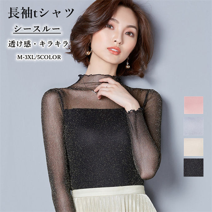 シアートップス シースルー レディース レディースファッション 通販 ブラック 杏色 グレー ピンク M L XL 2XL 3XL