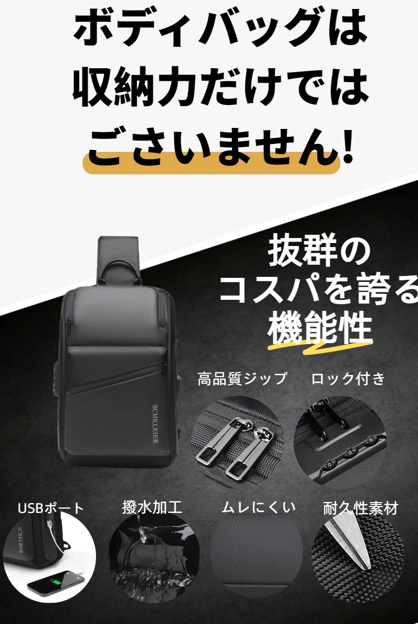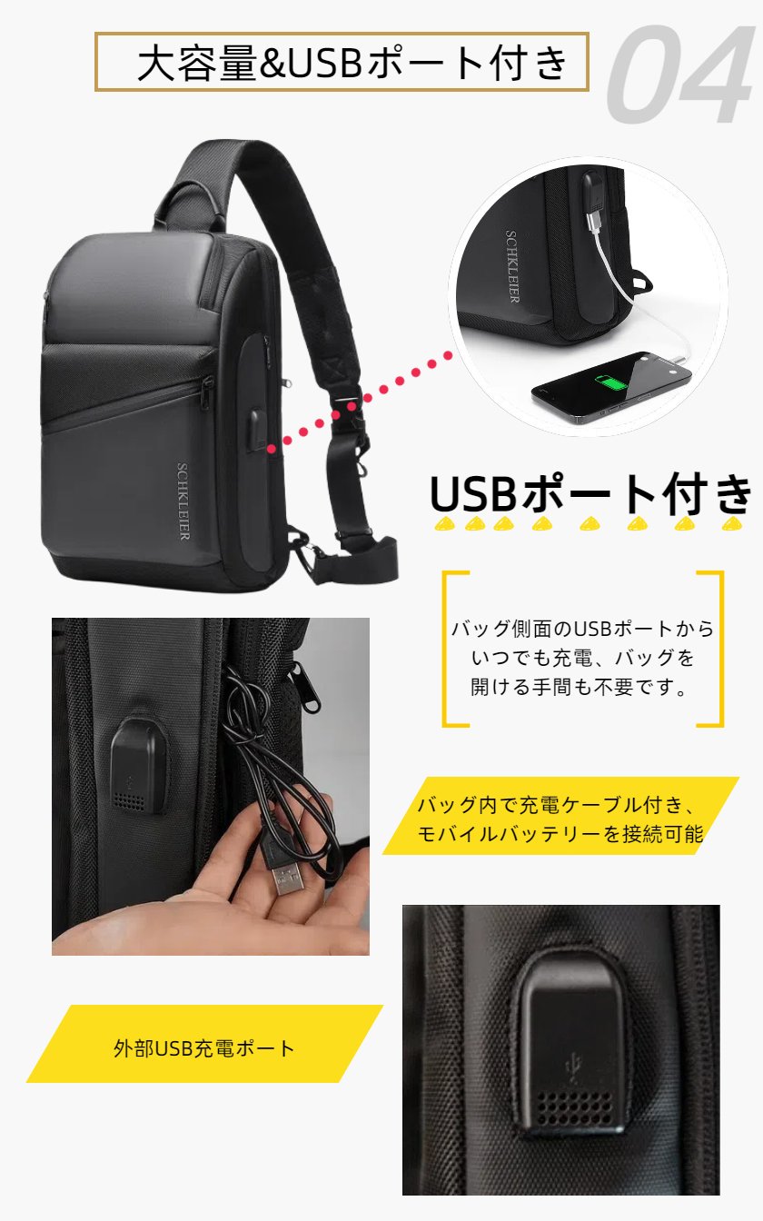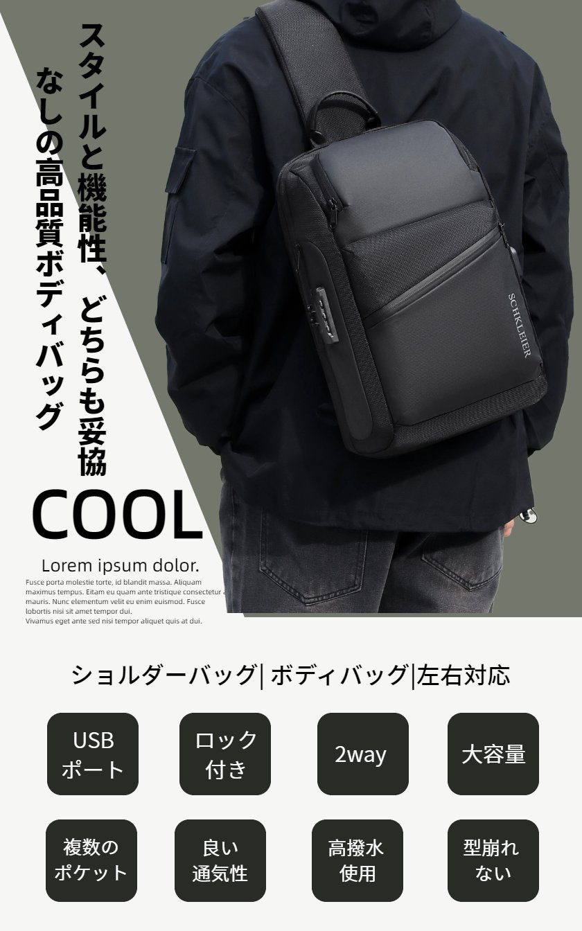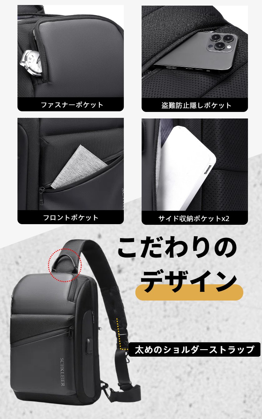 ボディバッグ メンズ ショルダーバッグ バッグ USB充電 ロック付き 型崩れしない 超軽量 大容量 2way ボディーバッグ 斜めがけ 肩掛け 防犯 撥水 おしゃれ 丈夫 頑丈 耐久性 かっこいい