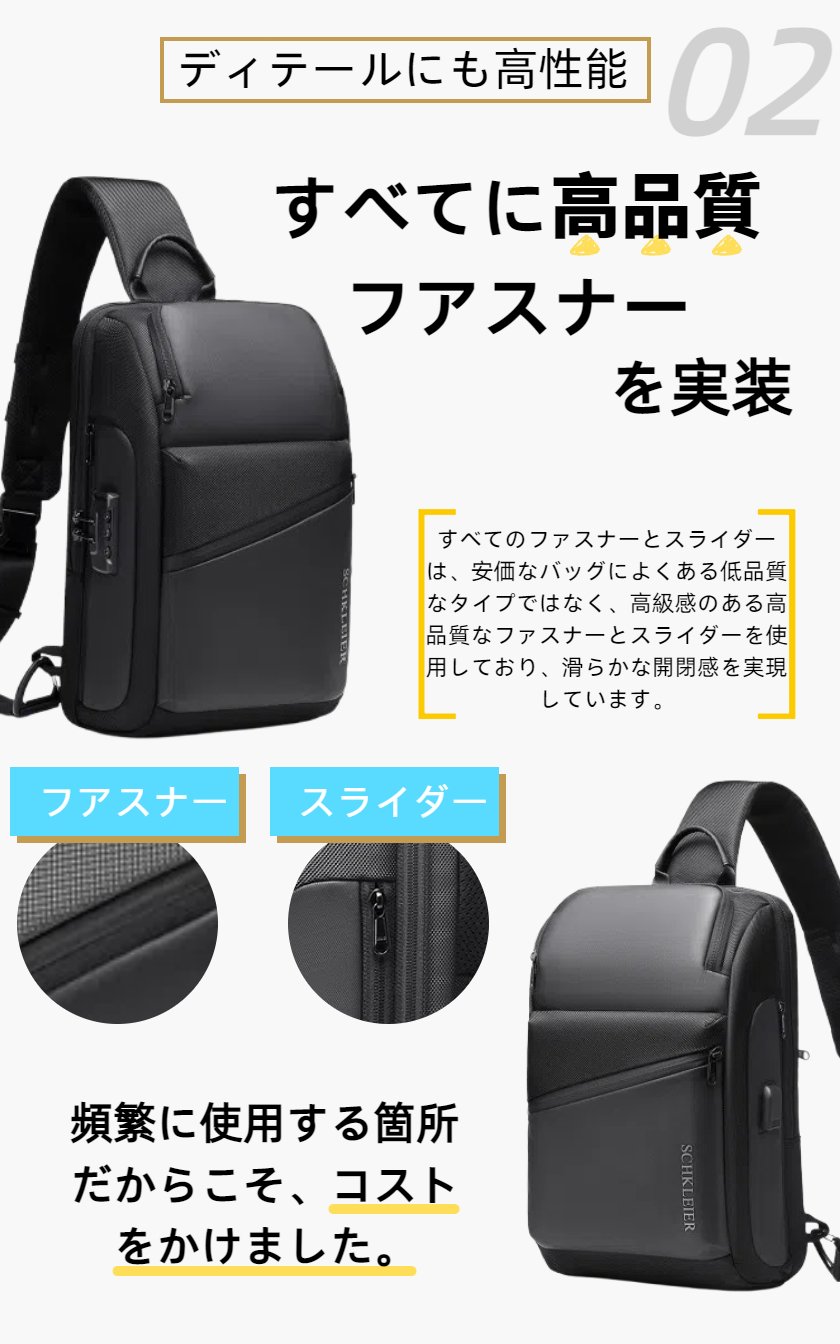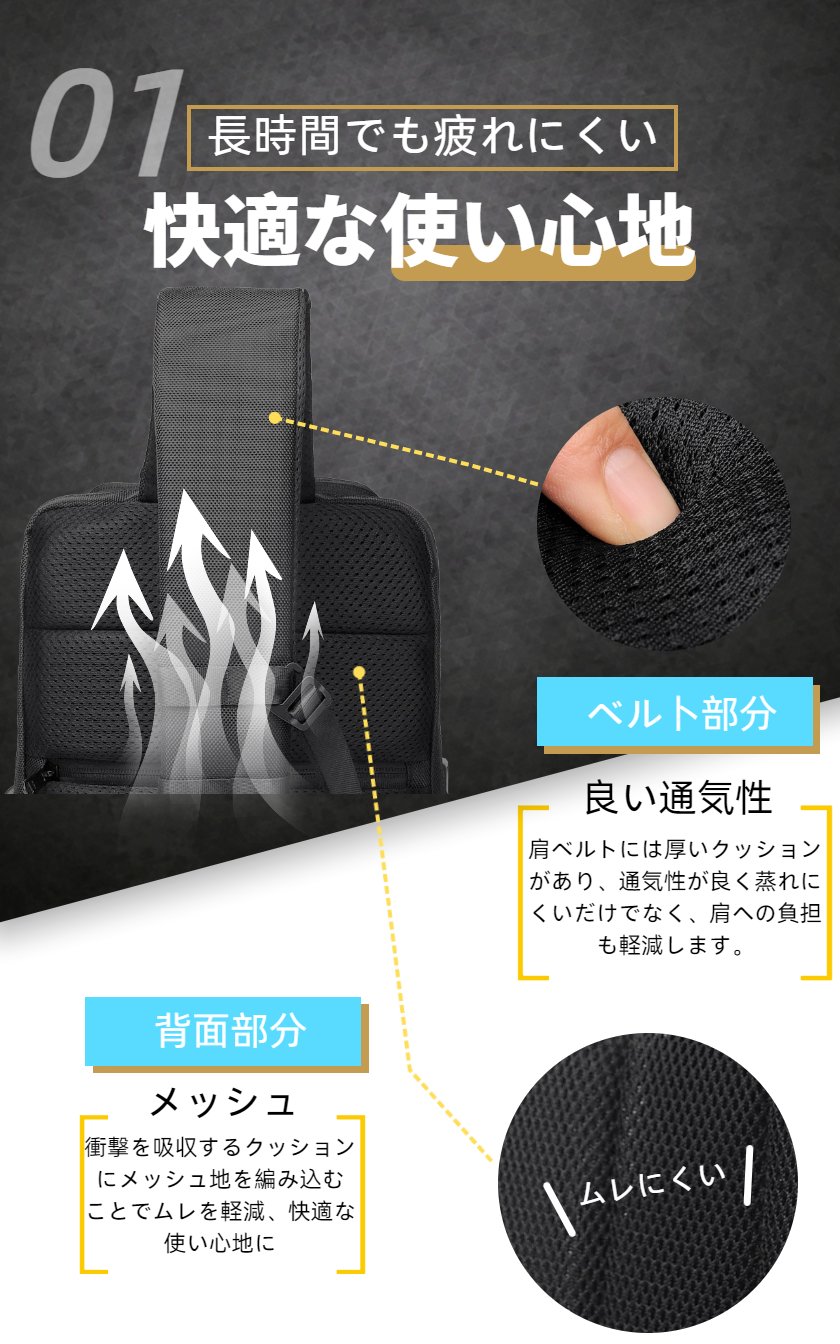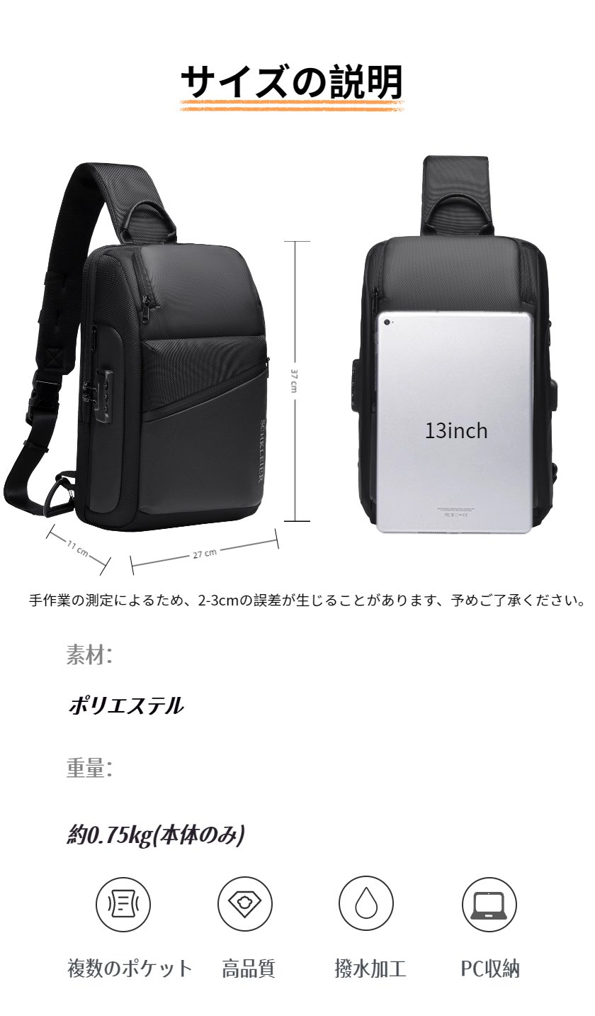 ボディバッグ メンズ ショルダーバッグ バッグ USB充電 ロック付き 型崩れしない 超軽量 大容量 2way ボディーバッグ 斜めがけ 肩掛け 防犯 撥水 おしゃれ 丈夫 頑丈 耐久性 かっこいい