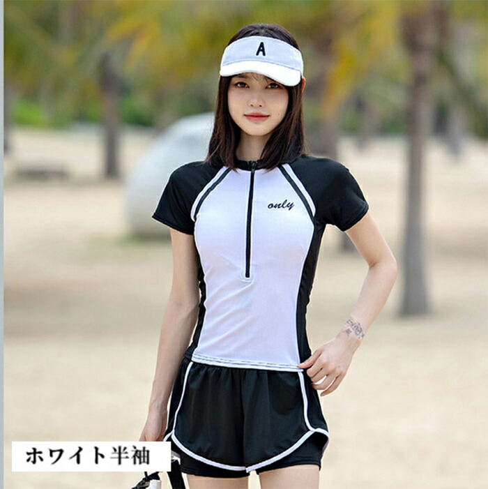 レディース フィットネス水着 スポーツ 水着 続々入荷中 ホワイト半袖 ホワイト長袖 S M L XL