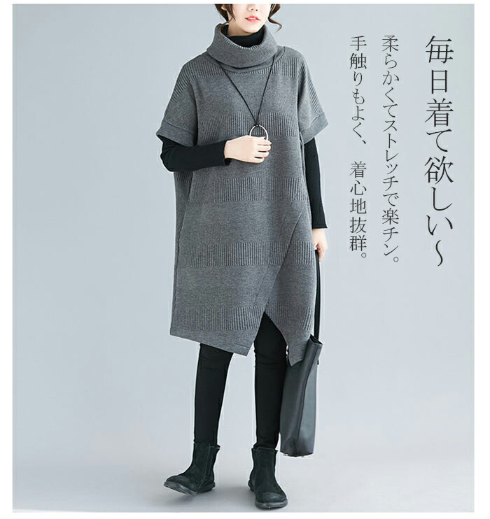 ニットワンピース レディース チュニッ チュニック 早い者勝ち グレー ブラック カーキ ワインレッド