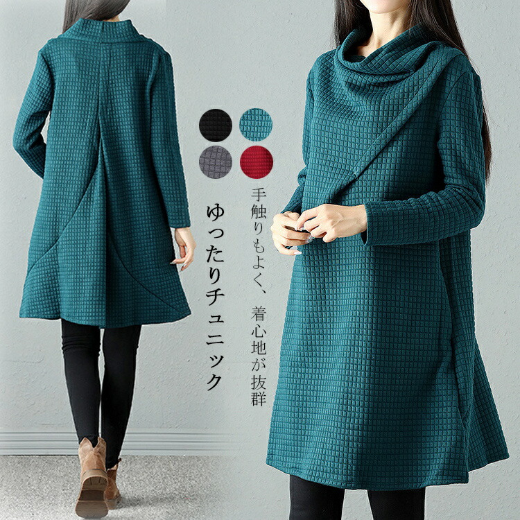 チュニック ワンピース 長袖 膝丈 チ レディースファッション 続々入荷中 ブラック グリーン グレー レッド S M L XL 2XL 3XL 4XL