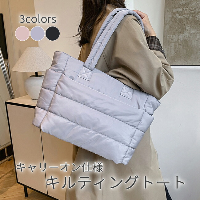 キルティング トートバッグ 大容量 旅行 通勤 通学 ファスナー付き レディース 大きめ 軽い 仕切り ポケット お出かけ 肩掛け a4 収納 おしゃれ マザーズバッグ シンプル かわいい