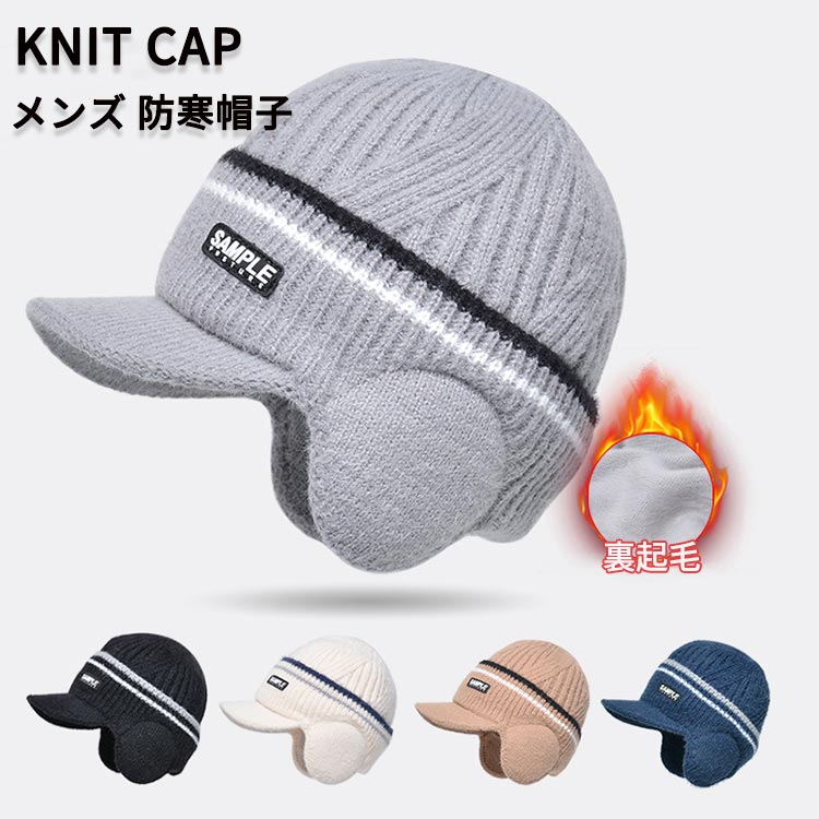ニット帽 メンズ 耳あて 冬 ニットキャップ つば付き 帽子 裏起毛 ニット イヤーマフ 秋冬 小顔効果 防寒キャップ 毛糸帽子 厚手 あったか 暖かい 防風 スノー アウトドア ゴルフ 保温