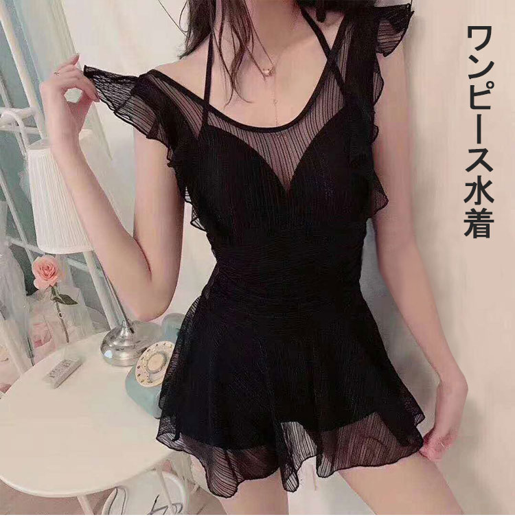 送料無料 フィットネス エレガント リゾート 可愛い お洒落 キレイめ 海辺 デザイン感 ビーチ フレアワンピース 体型カバー ワンピース水着
