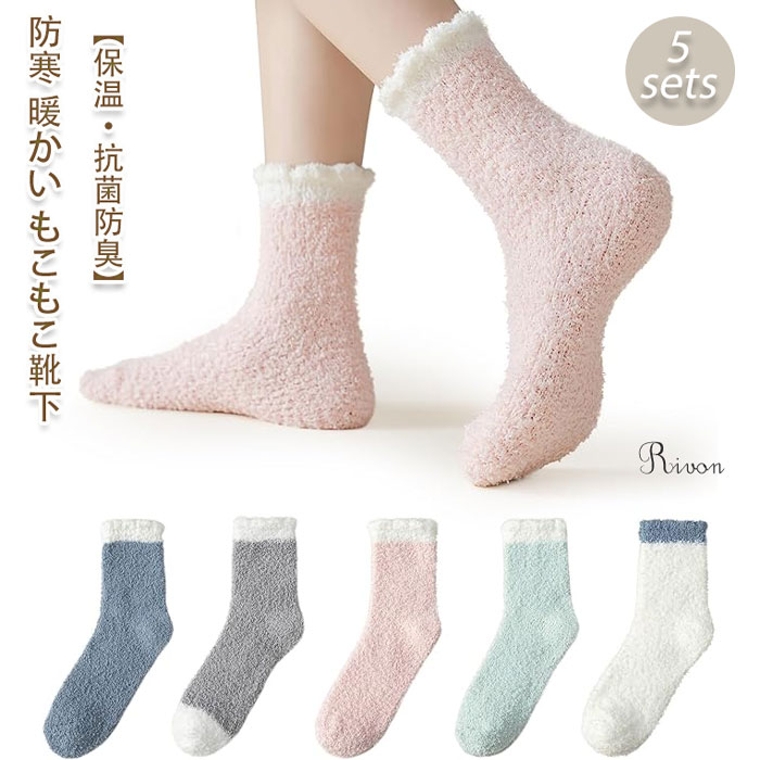 靴下 レディース 秋冬 5足セット もこもこ靴下 ソック スルームソックス くつした 防寒 暖かい あったか 通気性 厚手 寝る時用靴下 冬用靴下 室内 温かい靴下