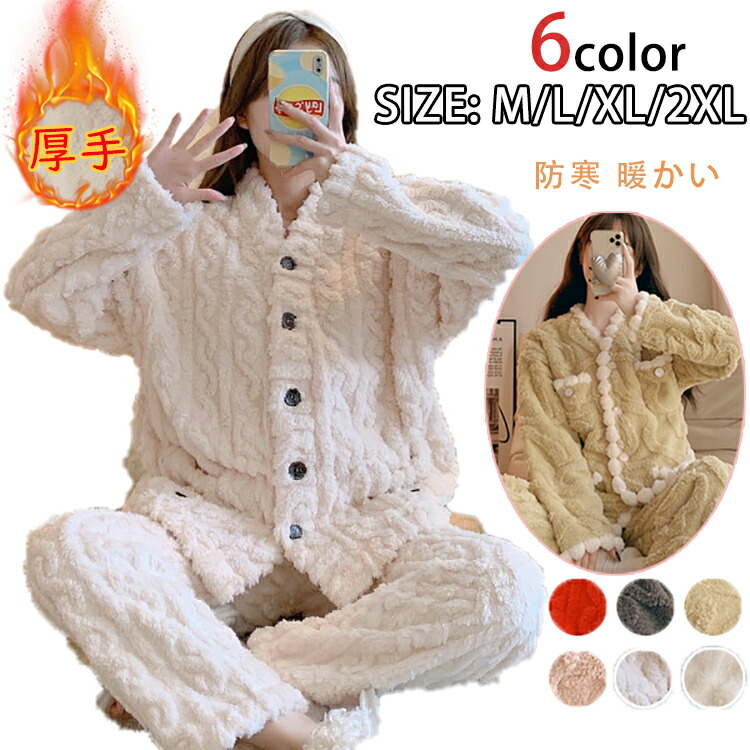ルームウェア 上下セット 冬 パジャマ レディース 長袖 もこもこ かわいい 秋冬 前開き 上下 モコモコ 部屋着 あったかい