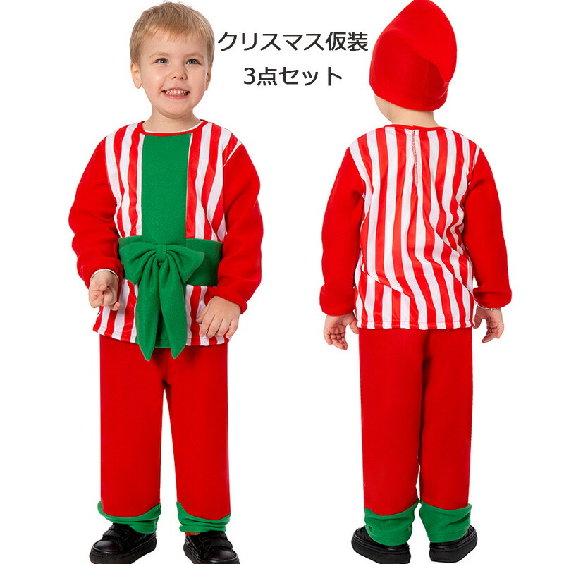 サンタ 衣装 キッズ 女の子男の子 サンタ服コスチューム衣装3点セット子供クリスマス衣装コスプレコスチュームおしゃれコスチューム 仮装ボーダー柄 誕生祝い プレゼント100 120 130 1 110