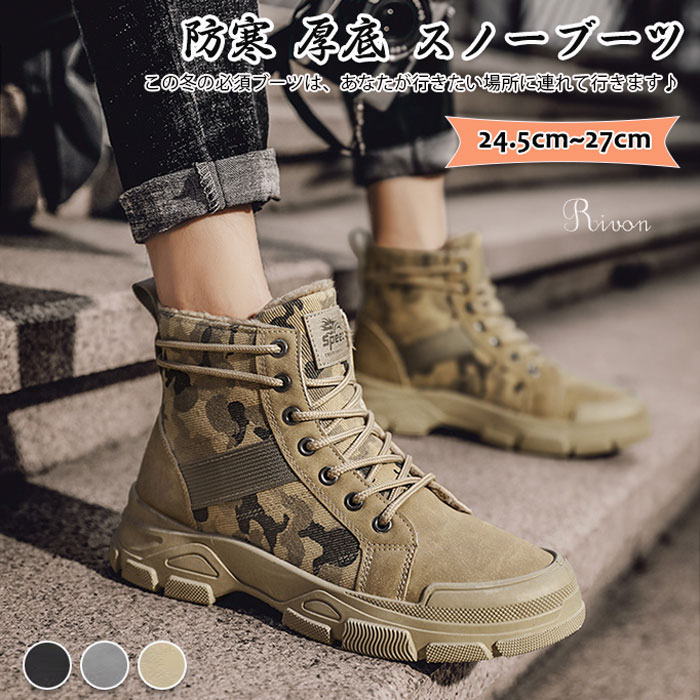 スノーブーツ メンズ 裏起毛 防寒 防水 ブーツ ミリタリー カモフラージュ カモフラ 迷彩 シューズ防滑 冬 靴 ハイカット 防寒靴 ワークブーツ アウトドア 滑らな ショートブーツ