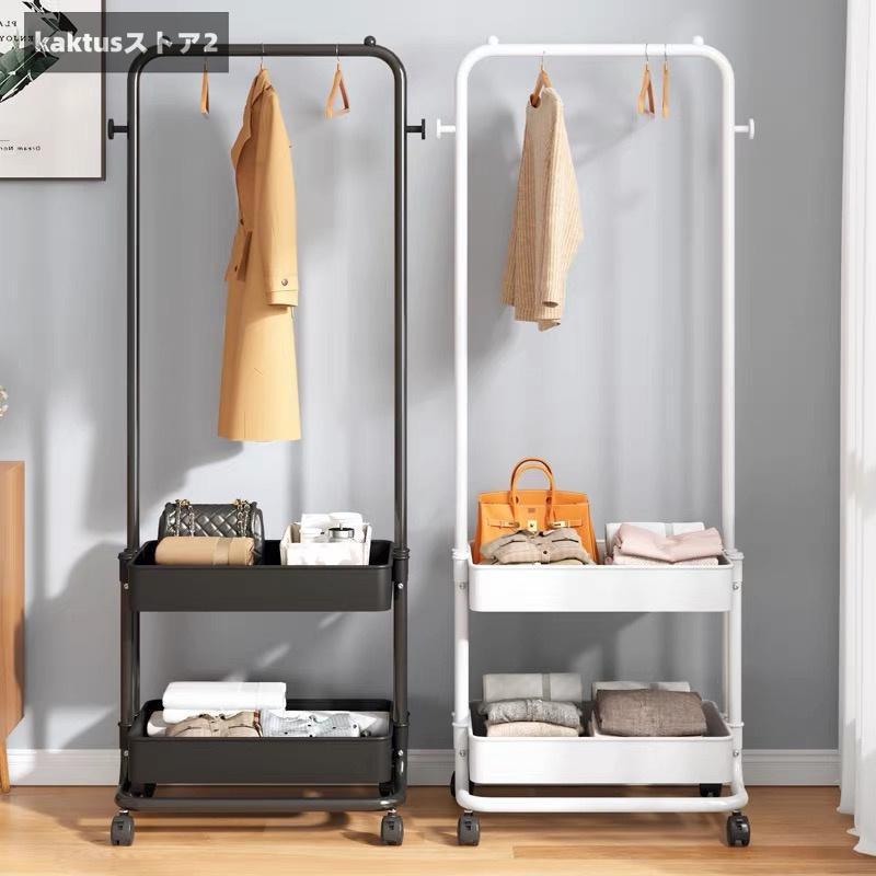 ハンガーラック おしゃれ 棚付き キャスター付き トローリーハンガー バスケット コートハンガー バスケット付き カゴ 子供 玄関 多機能 大容量 収納ラック 収納