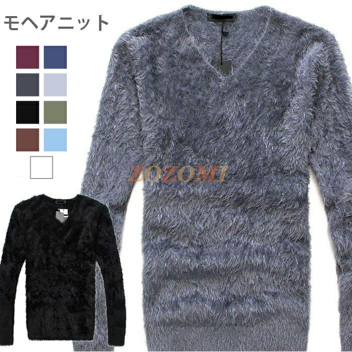 51%OFF モヘアニット ニット セーター メンズ フェザーヤーン モヘアタッチ Vネック 長袖 オシャレ モヘア風 冬 ふわふわ ゆるふわ 秋